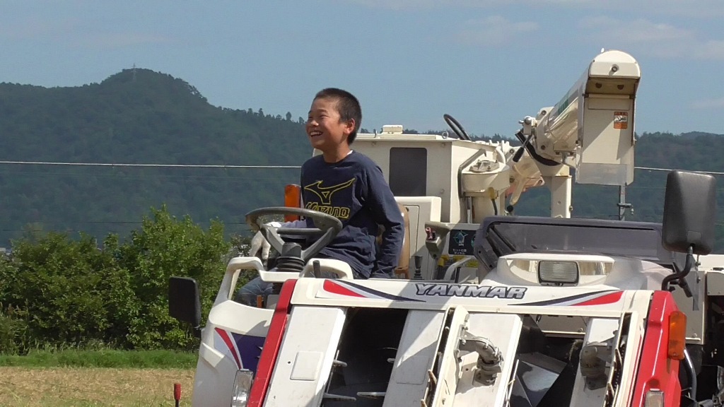 三宅小学校6年生 田んぼアート稲刈り体験(2019/09/27) ※ビデオからスナップショットした写真なので解像度が低く見難いです。申し訳ありません。