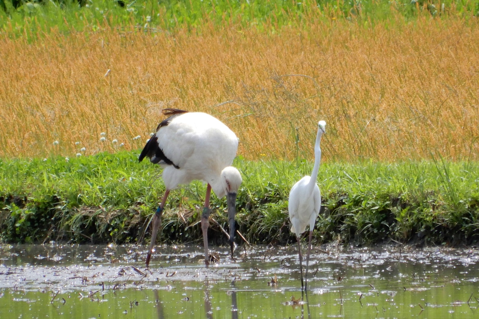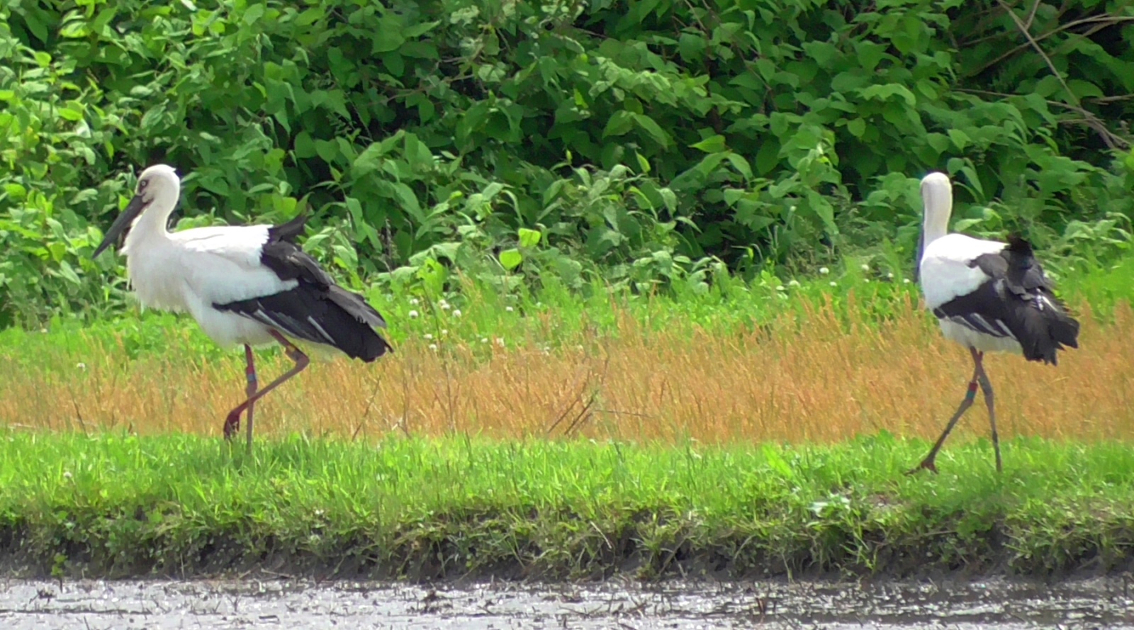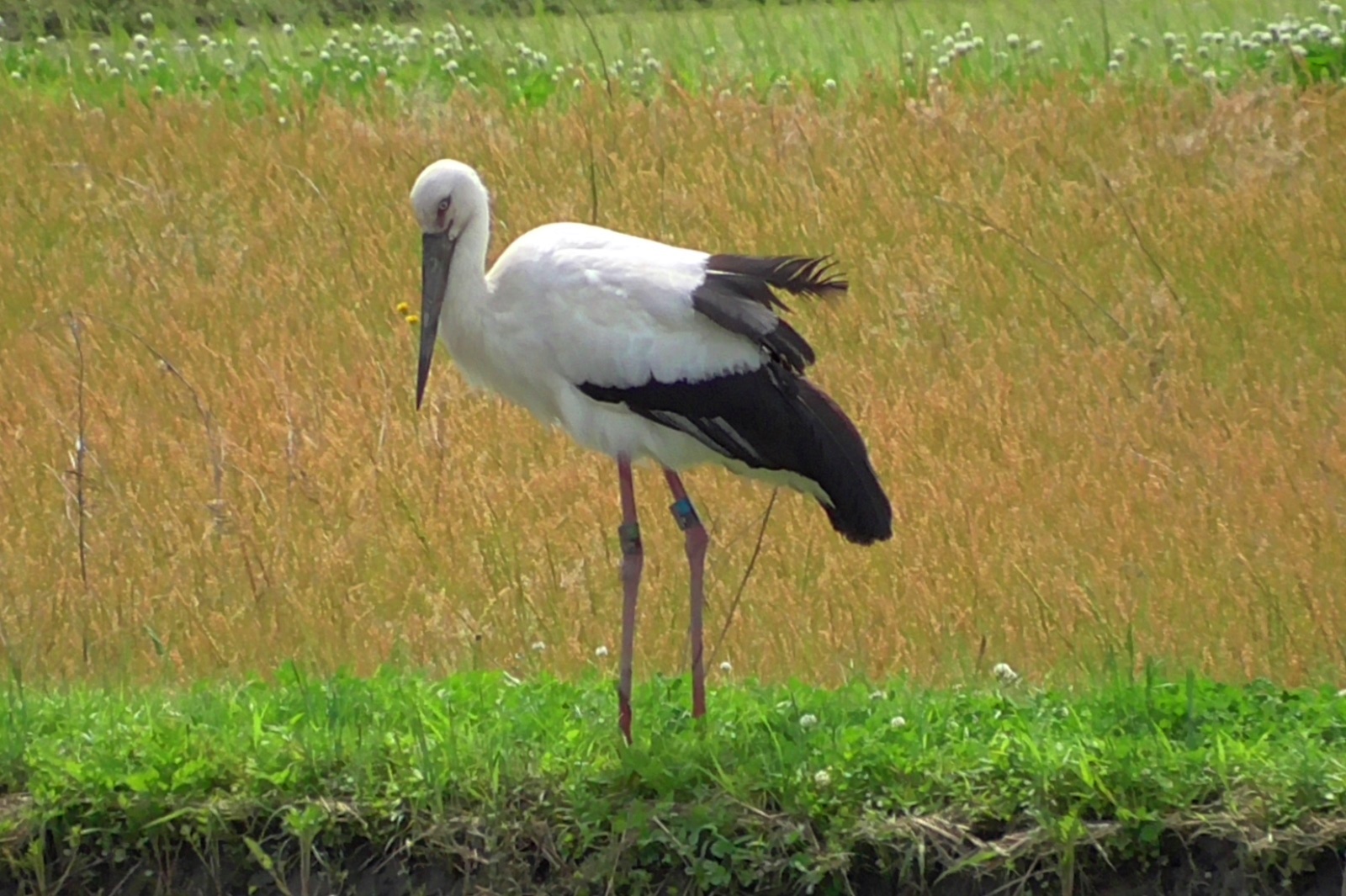 コウノトリ 農園圃場に3羽飛来 (2023/05/21)